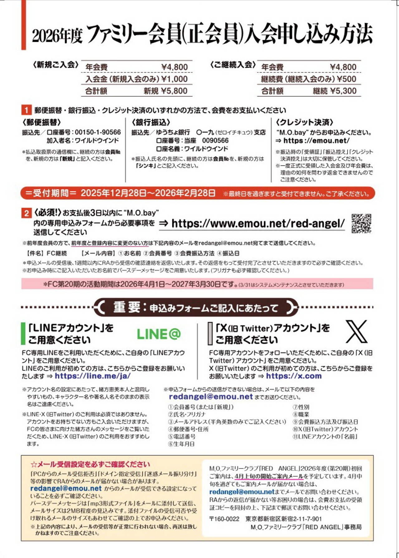 緒方恵美FC RED☆ANGEL2026年度会員募集!