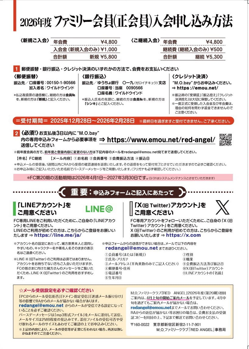 緒方恵美FC RED☆ANGEL2026年度会員募集!